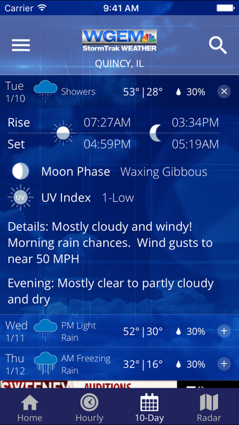 Die WGEM Mobile Weather App bietet umfassende Wetterinformationen speziell für iPhone-Nutzer. Sie ermöglicht den Zugriff auf Inhalte der Station, die für mobile Benutzer optimiert sind. Mit einem hochauflösenden 250-Meter-Radar und einem zukunftsorientierten Radar können Nutzer die Entwicklungen von Unwettern genau verfolgen. Zudem werden hochauflösende Satellitenbilder und stündlich aktualisierte Wettervorhersagen bereitgestellt, die sowohl tägliche als auch stündliche Prognosen umfassen.